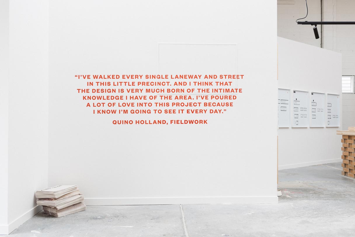 Designed by DesignOffice for Milieu Property, the display gallery doubled as both an exhibition space for local photographers and as a sales tool for Milieu's apartment project in Collingwood. The construction timeframe was 2 months, and featured a replica kitchen, display joinery, and custom bench-seats.