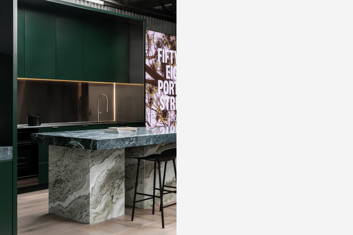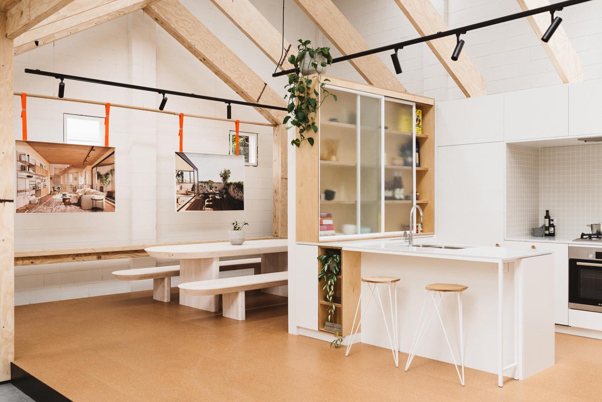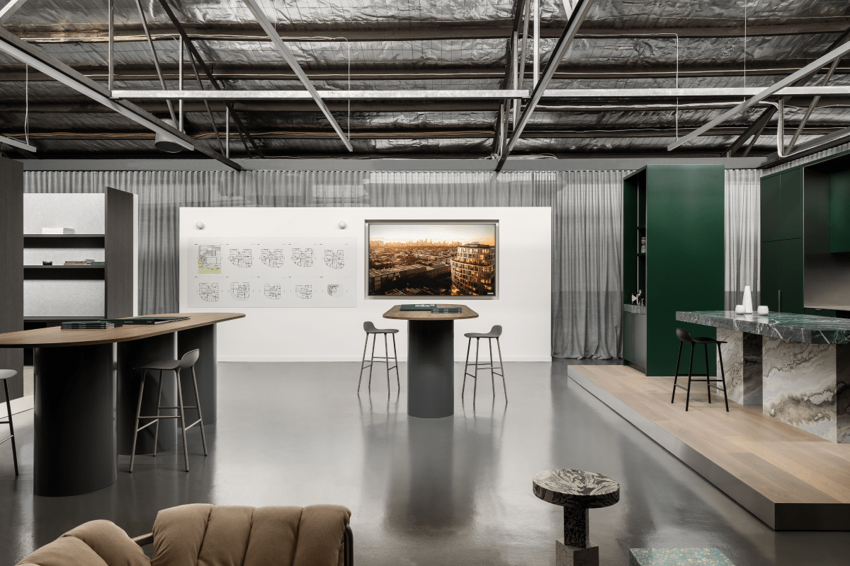 The architects, Freadman White cleverly designed the display suite to work within the existing building's footprint. The large display suite featured a complete kitchen and walk in pantry, bedroom, bathroom and large open living and meeting space. The display opened in May 2022.