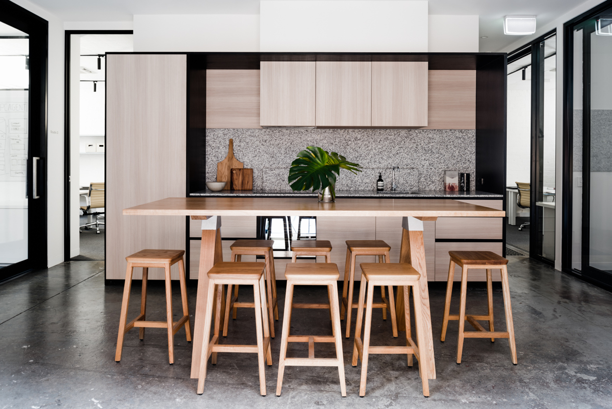 Design by DesignOffice, the office fit-out in Hawksburne Village was completed in mid 2016. It provides a working environment broken into three key areas; presentation, research and production. Cork panels bookend the space and a detailed joinery unit provide a crafted centrepiece.