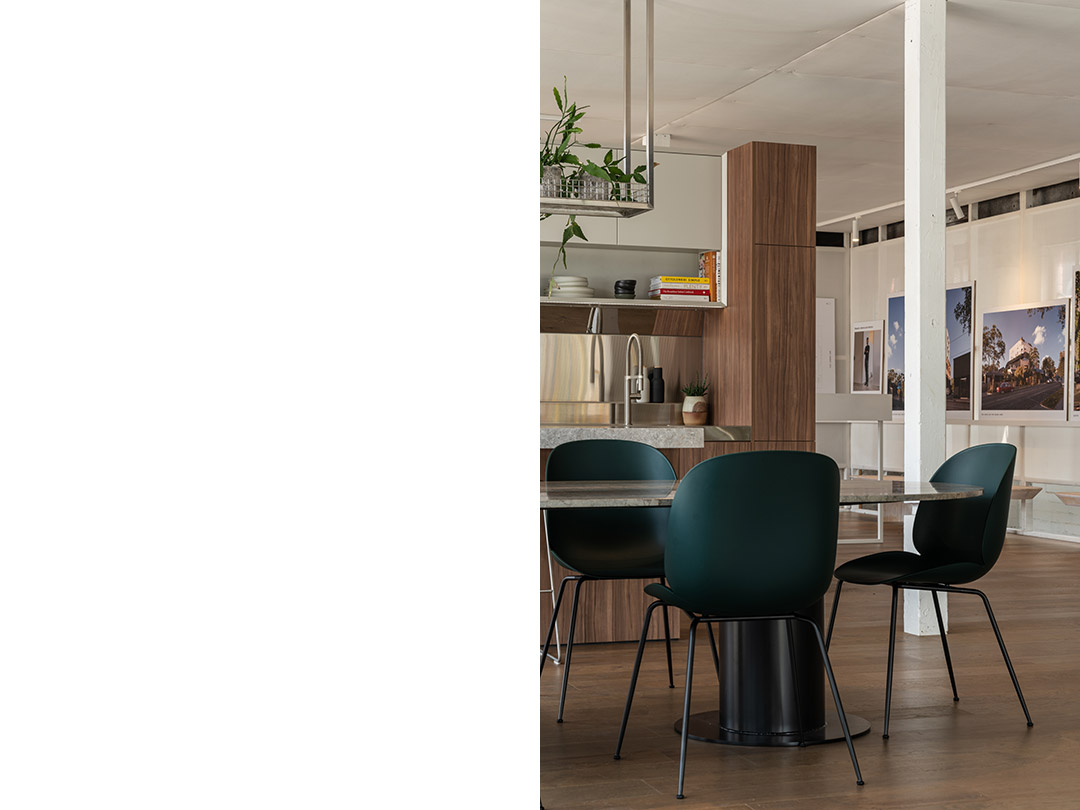 Located within an old mechanics workshop, the Nth FITZROY display suite and site activation was designed in conjunction with Fieldwork and Flack Studios for Milieu Property's release of 26 Breathable Apartments. In addition to the display kitchen and joinery features, INC also retrofitted another existing building for Saint Georg Coffee, a small café pop-up.
